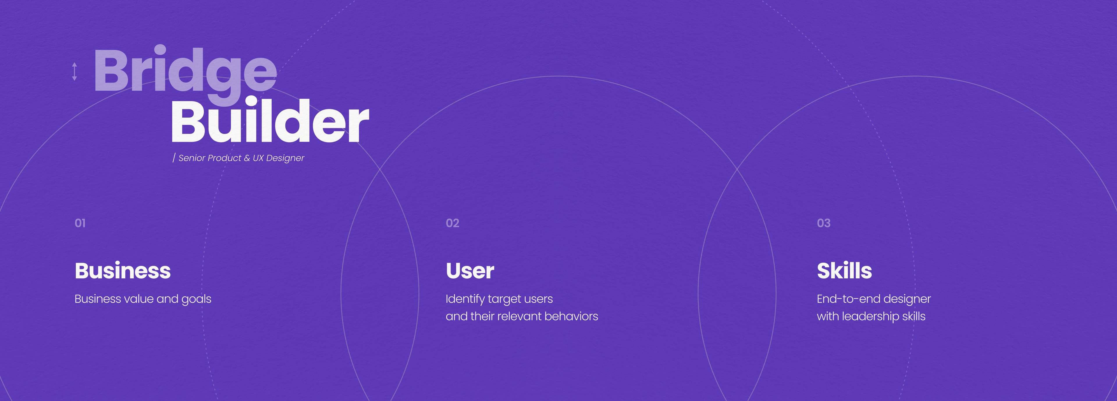 "Senior Product & UX Designer with over 5 years of experience. As a bridge builder, I help businesses create user-friendly products."